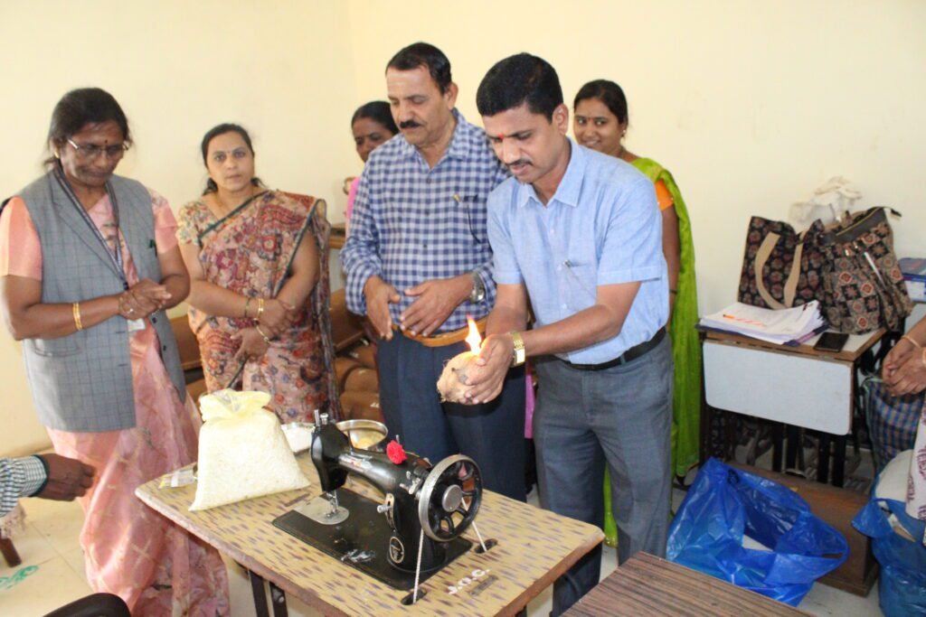 The inaugural ceremony of the Free Stitching Training Class, organized under the Women Empowerment Program, was held on July 21, 2025, at Shree L. K. Khot College of Commerce. The program is exclusively designed for female students of the college, with the aim of equipping them with practical stitching skills and promoting self-reliance.