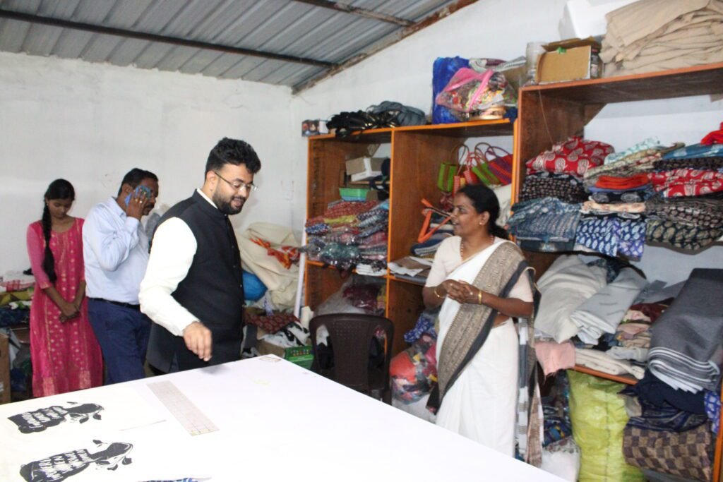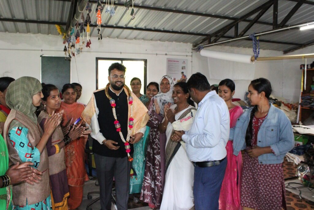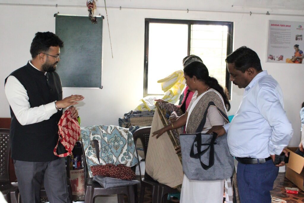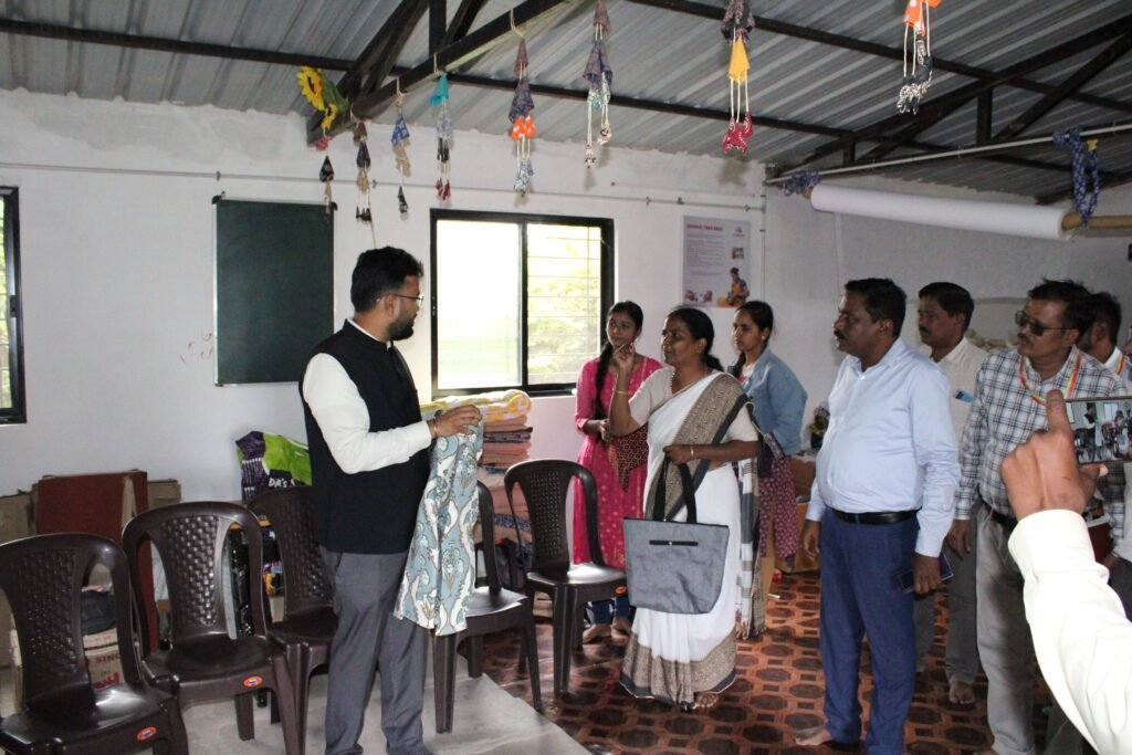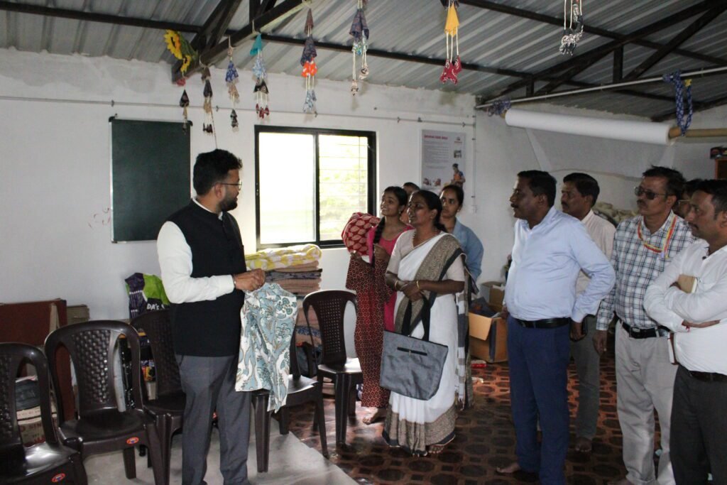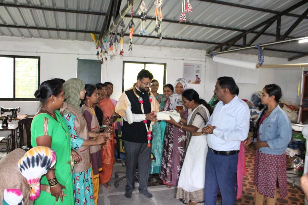 During the visit, Mr. Shinde interacted with women participants undergoing free stitching training and appreciated their enthusiasm and dedication.
